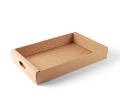 Vaschetta di cartone per frutta e verdura, perfetta per negozi di frutta e verdura che vogliono presentare i prodotti in modo creativo ed ecologico. Una confezione originale per far risplendere la tua frutta di stagione